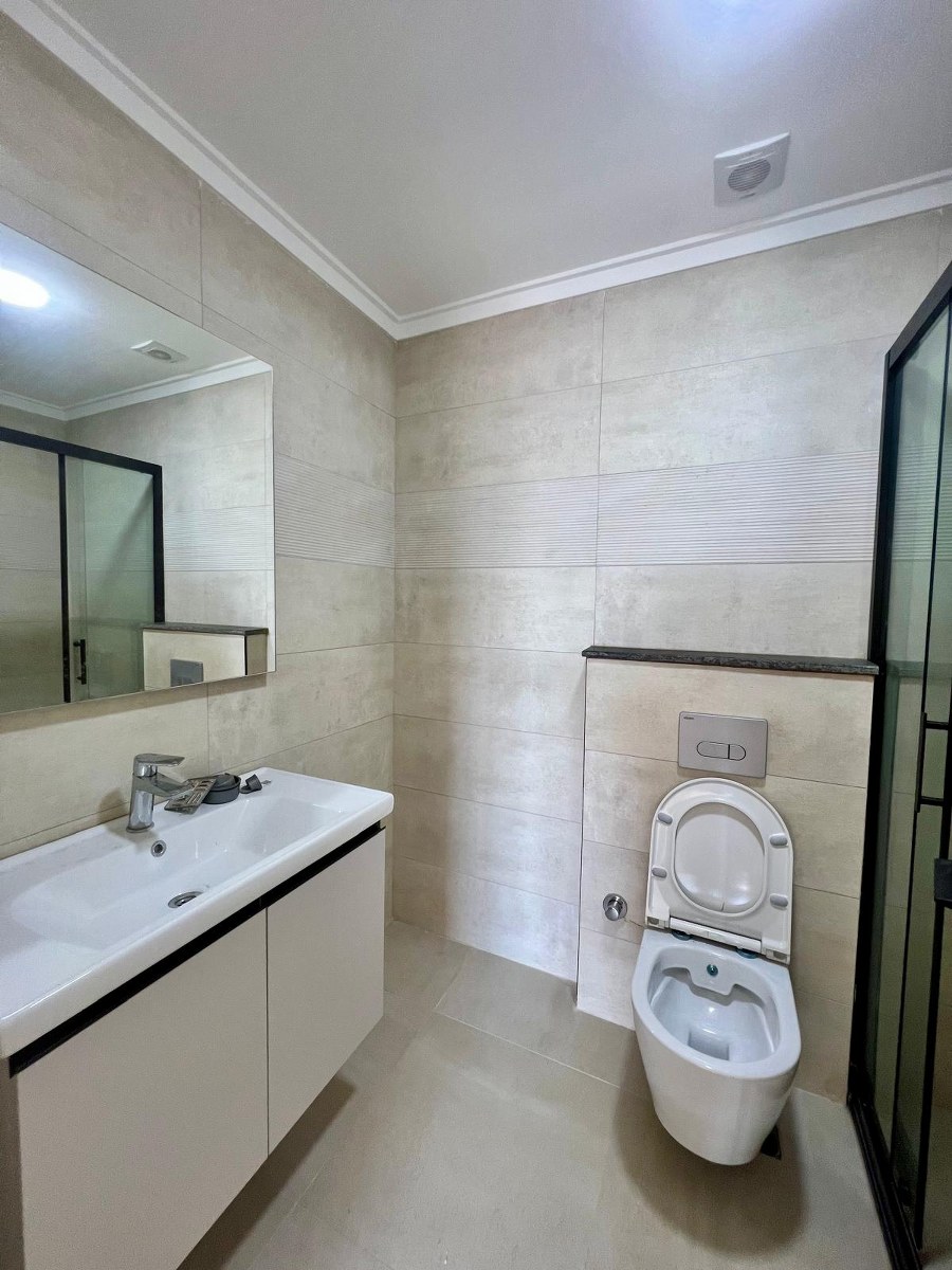 Die Wohnung überzeugt durch eine funktionale Aufteilung mit zwei Badezimmern und zwei Balkonen. Die Anlage selbst gleicht einem 5-Sterne-Resort: Entspannen Sie im Pool mit Aquapark, im Hamam oder in der Sauna. Für Aktive stehen ein Fitnesscenter und ein Kinderspielplatz zur Verfügung.
