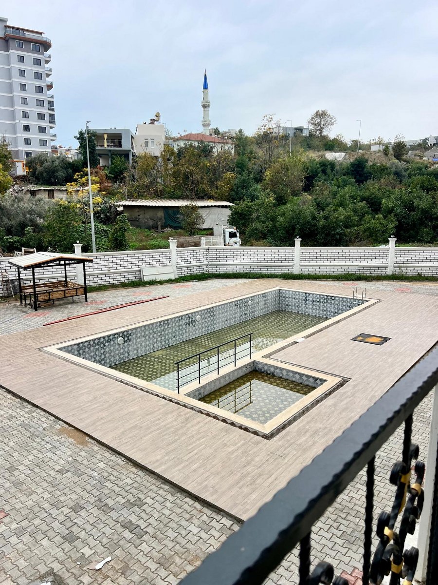 Die Anlage lässt keine Wünsche offen: Ein erfrischender Außenpool, ein schöner Garten mit Kamelie (Gartenlaube) zum Entspannen sowie ein sicherer Parkplatz stehen den Bewohnern zur Verfügung. Für zusätzliche Sicherheit sorgt ein leistungsstarker Generator. Obwohl Sie hier die idyllische Ruhe von Demirtaş genießen, ist das azurblaue Mittelmeer nur 900 Meter entfernt.