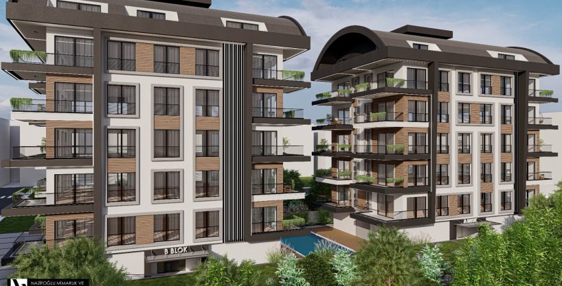 Exklusives Wohnen im Herzen von Mahmutlar, Alanya. Diese moderne Anlage umfasst zwei 5-stöckige Gebäude auf einem 1.600 m² großen Grundstück, nur 600 Meter vom gepflegten Sandstrand entfernt. Genießen Sie die perfekte Mischung aus Meerblick, Berglandschaft und der Nähe zu Orangen- und Bananenhainen.