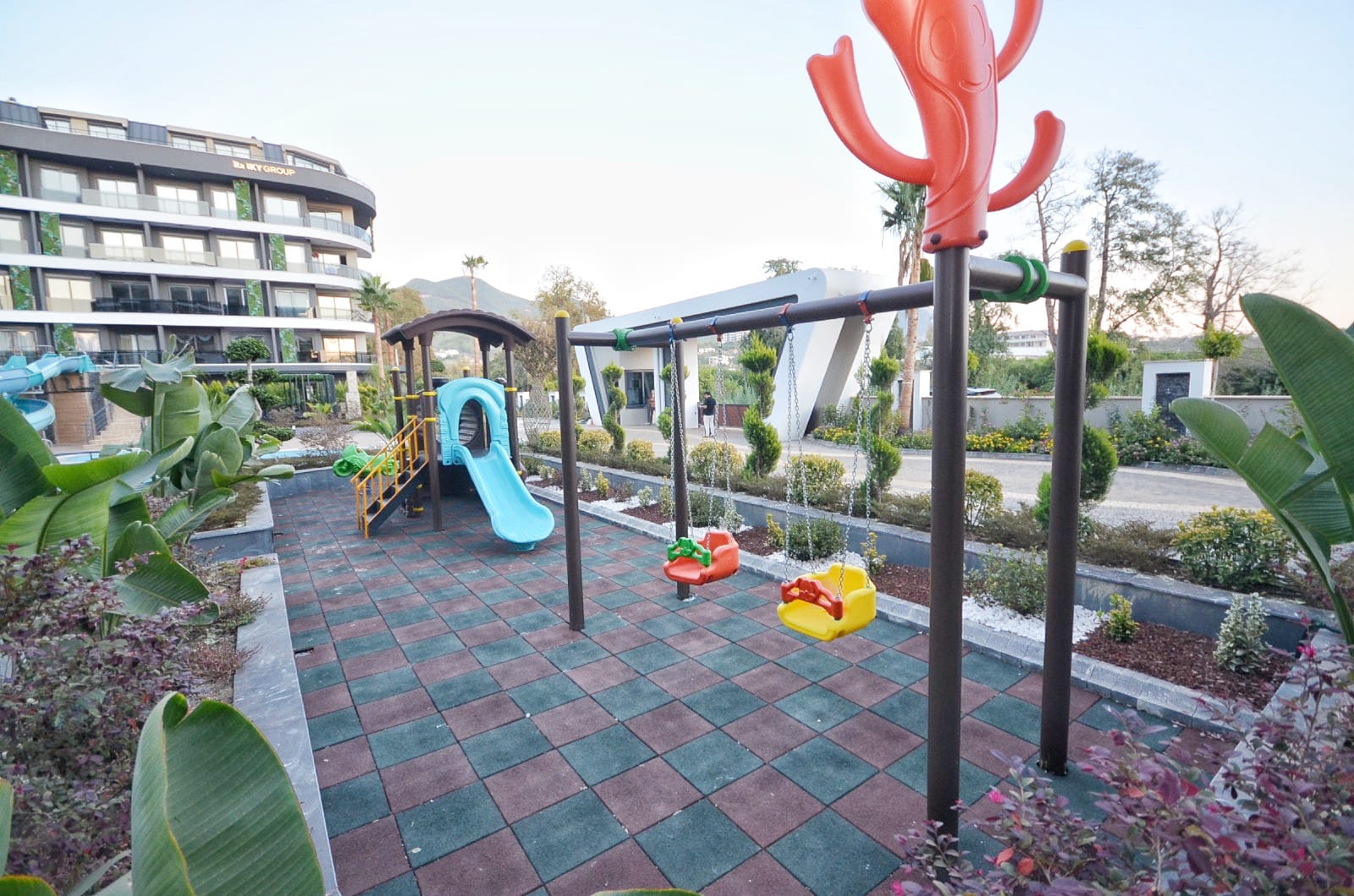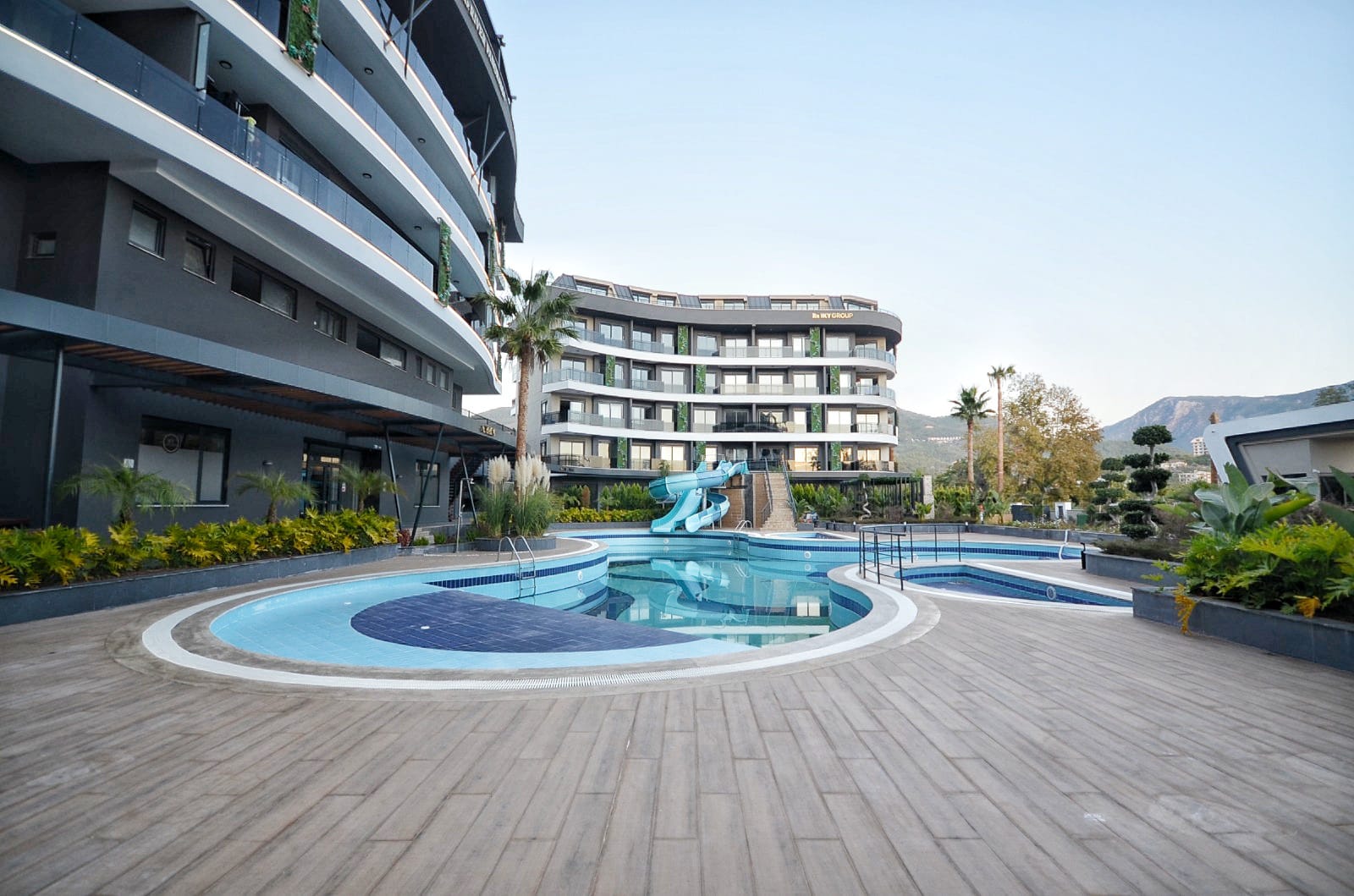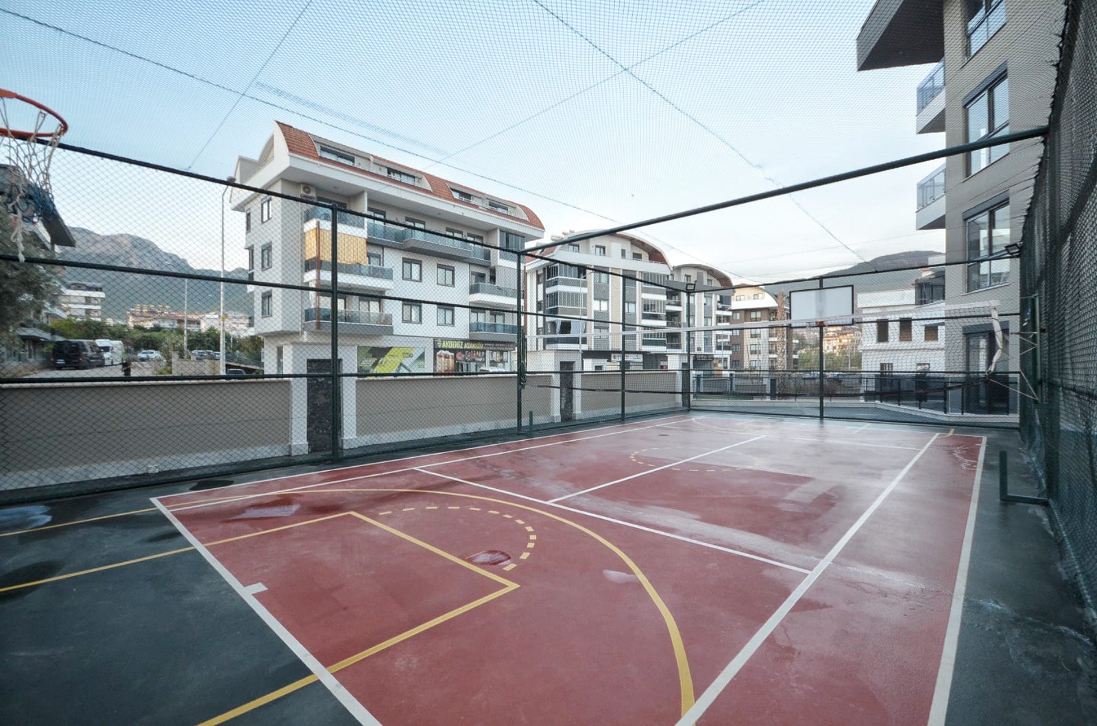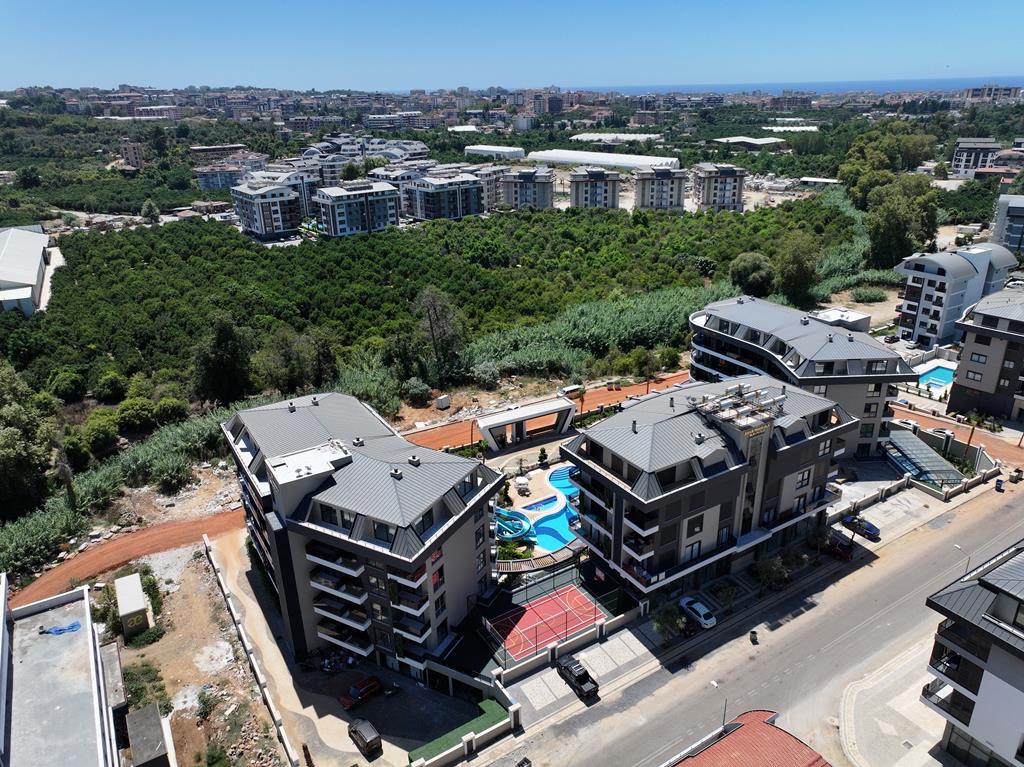 Die Anlage ist ein wahres Paradies für Freizeit und Erholung: Genießen Sie den Außen- und Innenpool mit Aqua Park, entspannen Sie im Hamam, in der Sauna oder im Massageraum. Für Sportbegeisterte stehen ein Fitnesscenter und ein Basketballplatz zur Verfügung. Ein besonderes Highlight für die Zukunft ist der Parkplatz mit Ladestationen für Elektrofahrzeuge. Wer eine Wohnung kaufen in Oba möchte, findet hier die perfekte Kombination aus Ruhe und Luxus. Trotz der Distanz von 3000 Metern zum Meer bietet die Residenz durch ihre grüne Umgebung und die umfangreichen sozialen Aktivitäten eine unvergleichliche Lebensqualität.