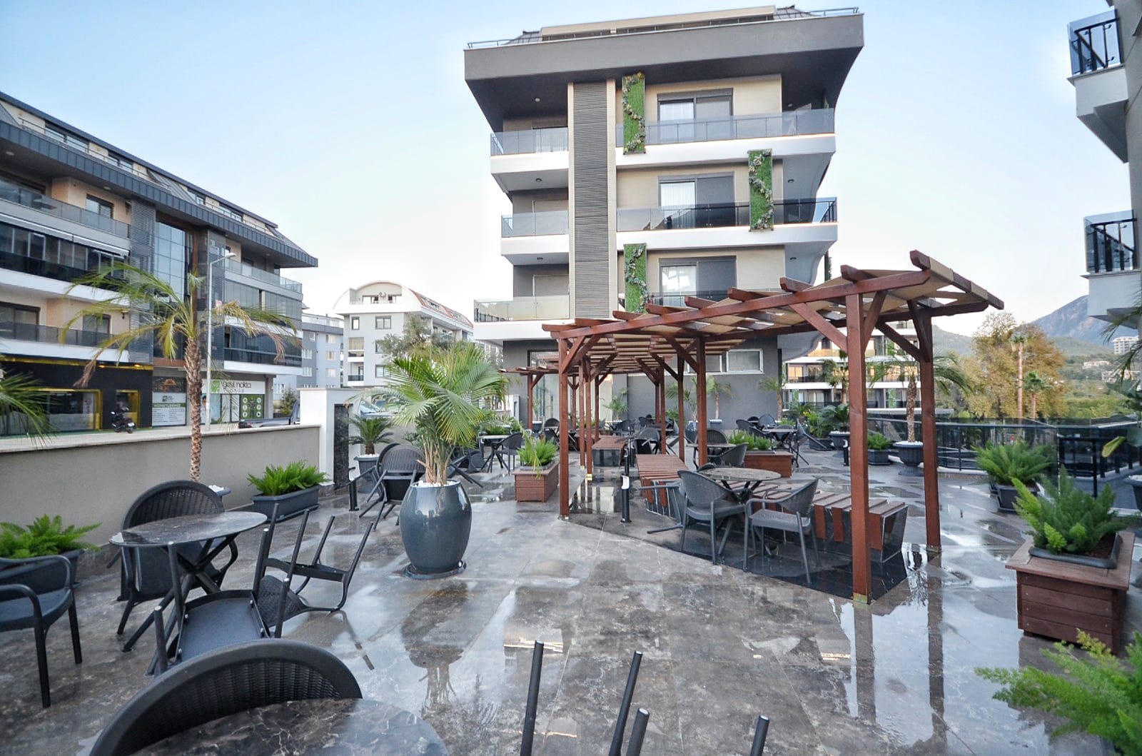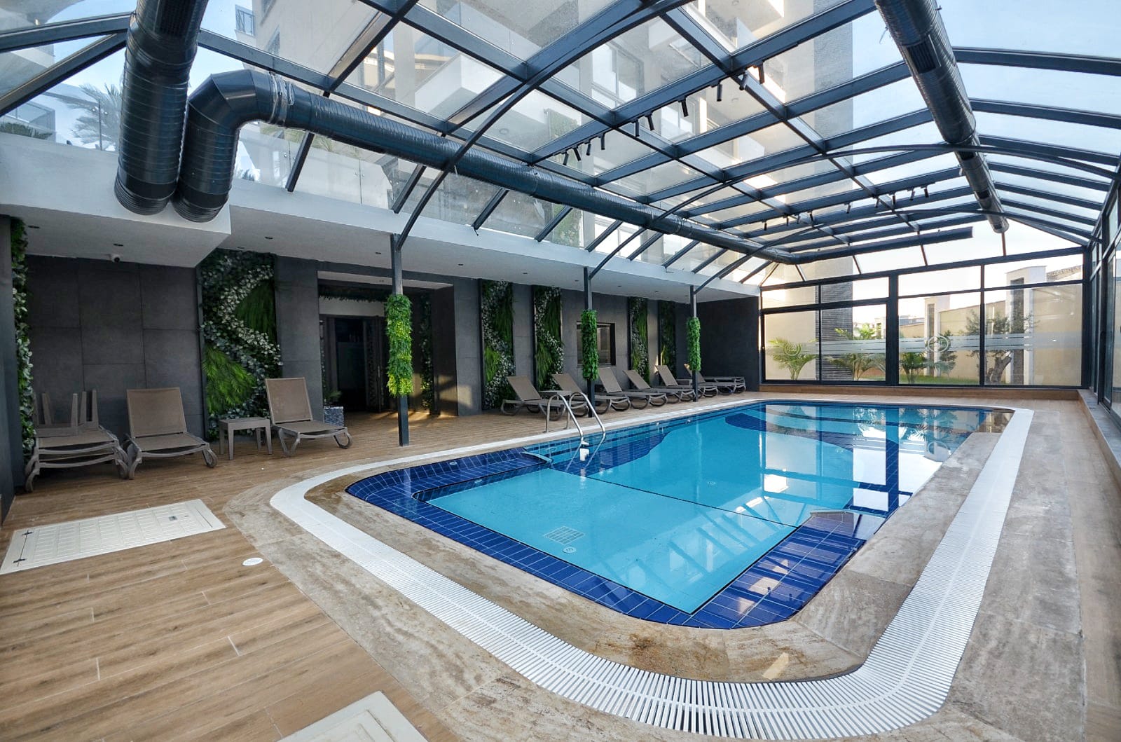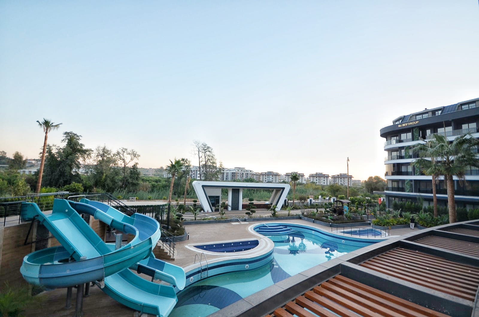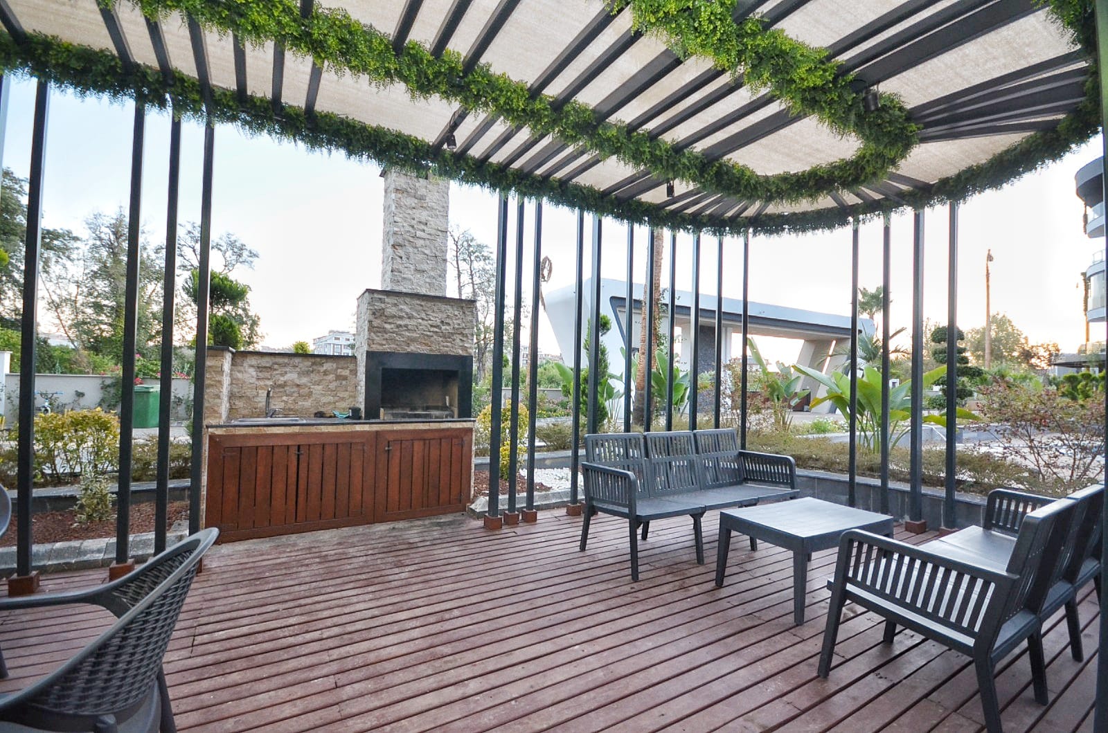 Die Anlage ist ein wahres Paradies für Freizeit und Erholung: Genießen Sie den Außen- und Innenpool mit Aqua Park, entspannen Sie im Hamam, in der Sauna oder im Massageraum. Für Sportbegeisterte stehen ein Fitnesscenter und ein Basketballplatz zur Verfügung. Ein besonderes Highlight für die Zukunft ist der Parkplatz mit Ladestationen für Elektrofahrzeuge. Wer eine Wohnung kaufen in Oba möchte, findet hier die perfekte Kombination aus Ruhe und Luxus. Trotz der Distanz von 3000 Metern zum Meer bietet die Residenz durch ihre grüne Umgebung und die umfangreichen sozialen Aktivitäten eine unvergleichliche Lebensqualität.