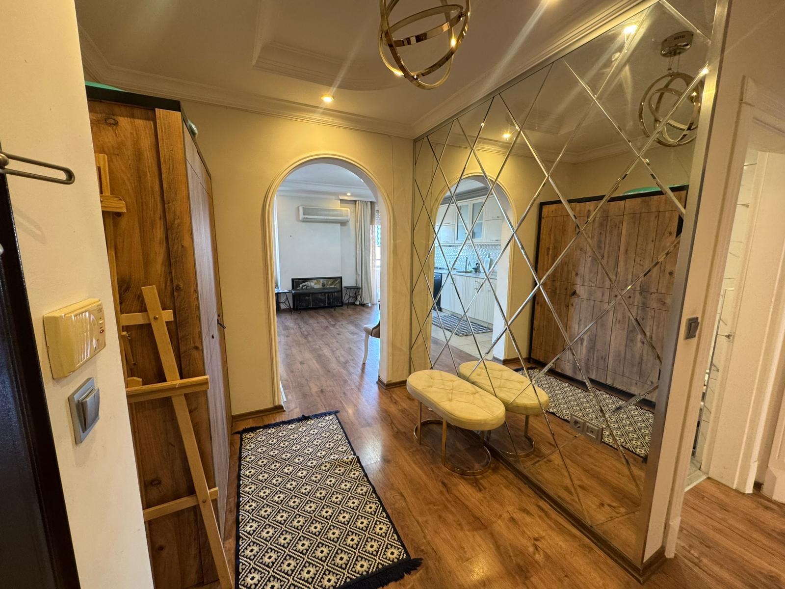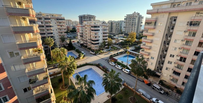 Diese großzügige 2+1 Wohnung in der prestigeträchtigen Toros 7 Residence steht für Lebensqualität pur. Auf 120 $m^2$ erwartet Sie ein lichtdurchflutetes Wohnambiente, das durch die Ost-West-Ausrichtung den ganzen Tag über von natürlichem Licht profitiert. Da die Vorderseite der Wohnung offen ist, genießen Sie einen entspannenden Blick direkt auf den Poolbereich der Anlage. Die Wohnung wird komplett möbliert übergeben, was Ihnen einen stressfreien Einzug ermöglicht.