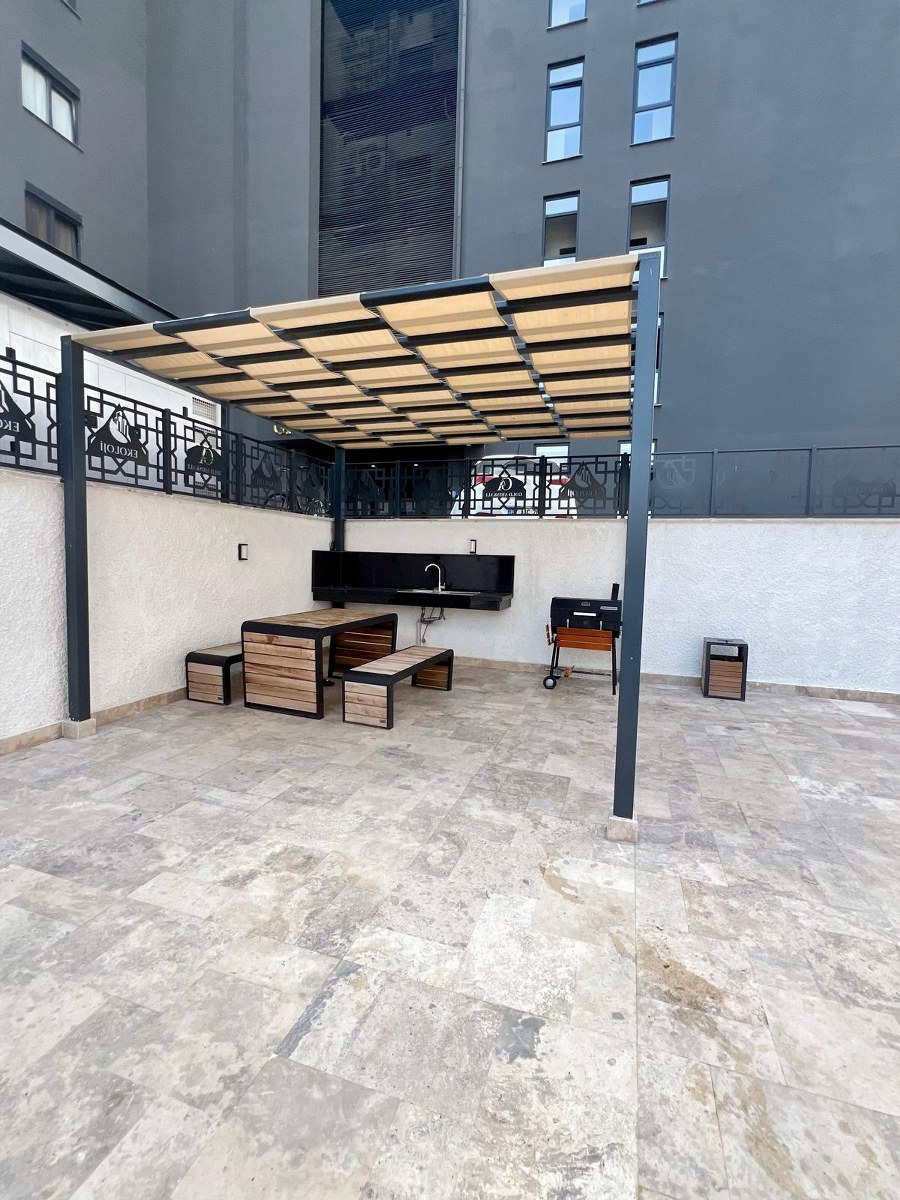 Der exklusive Komplex lässt keine Wünsche offen: Nutzen Sie den Pool mit Aquapark, entspannen Sie im Hamam, in der Sauna oder im Dampfbad. Ein Fitnesscenter, ein Kinderspielplatz und ein Grillplatz (Kamelya) stehen ebenfalls bereit. Für Ihre Sicherheit sorgen ein 24/7-Sicherheitsdienst, Kamerasysteme und ein hauseigener Generator.