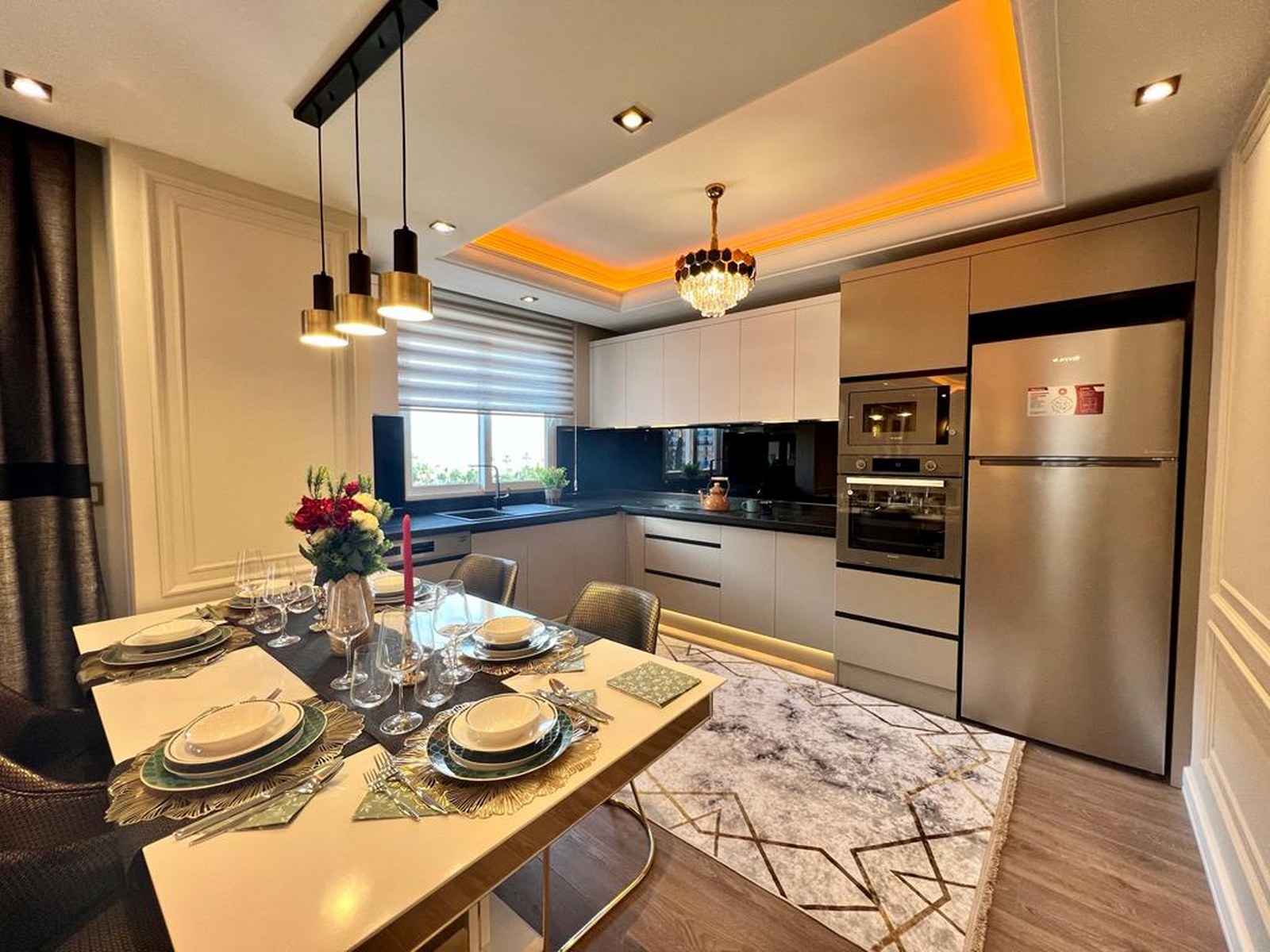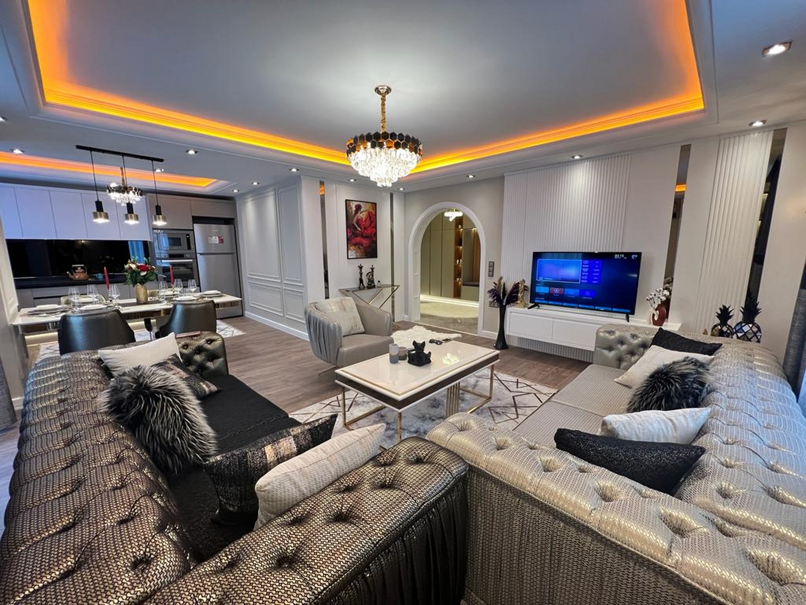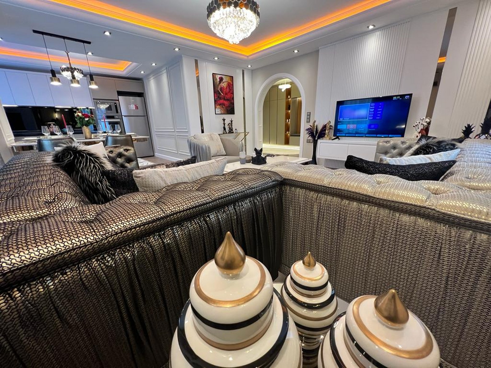 Willkommen in Ihrer neuen Luxuswohnung mit Meerblick in Alanya. Diese großzügige 2+1 Immobilie im 3. Stock definiert Komfort neu. Auf einer Wohnfläche von 134 $m^2$ erwartet Sie ein modernes Wohnerlebnis mit einer erstklassigen, luxuriösen Möblierung, die keine Wünsche offen lässt. Dank der besonderen Ausrichtung nach Süden, Norden und Osten genießen Sie den ganzen Tag über natürliches Licht und eine hervorragende Luftzirkulation.