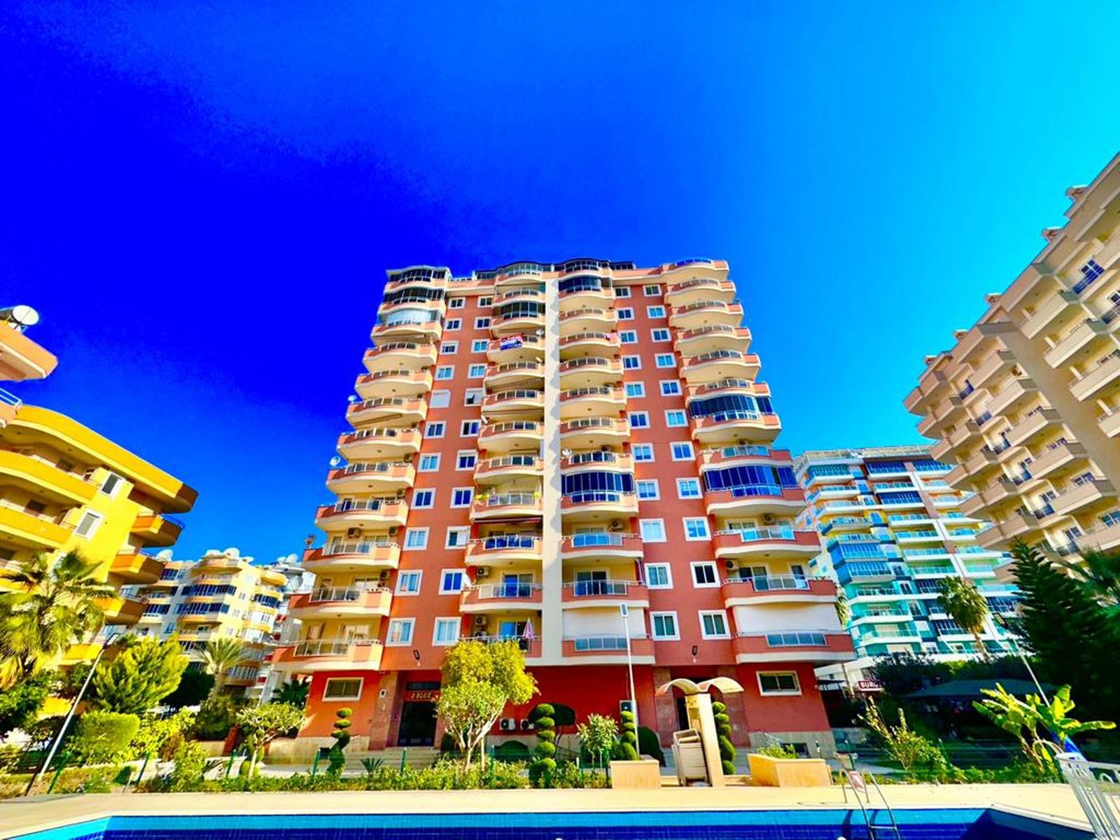 Die Wohnung verfügt über zwei moderne Badezimmer und zwei großzügige Balkone, von denen aus Sie das Mittelmeer bewundern können. Wenn Sie eine Luxuswohnung mit Meerblick in Alanya suchen, die sowohl zentral gelegen als auch strandnah ist, ist dieses Objekt mit nur 150 Metern Entfernung zum Meer die perfekte Wahl.