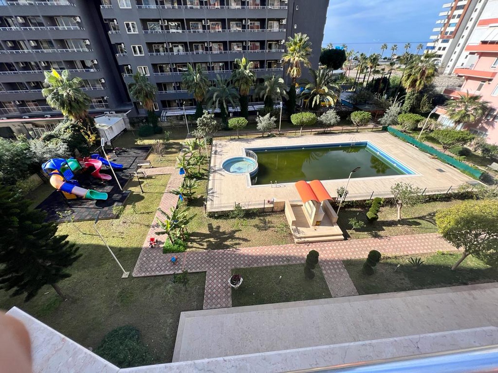 Die gepflegte Wohnanlage bietet Ihnen zahlreiche Annehmlichkeiten: Entspannen Sie im Außenpool oder in der hauseigenen Sauna, genießen Sie die Ruhe im grünen Garten mit Kamelie oder nutzen Sie den sicheren Parkplatz. Für Ihre Sicherheit sorgt ein modernes Kamerasystem, während ein Generator bei Stromausfällen einspringt. Diese Luxuswohnung mit Meerblick in Alanya vereint zentrale Urbanität mit dem entspannten Flair der türkischen Riviera.